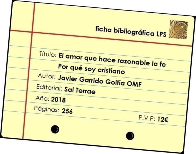 Transcurridas las primeras semanas de febrero, por fin ve la luz el último trabajo del franciscano D. Javier Garrido Goitia: El amor que hace razonable la fe. Por qué soy cristiano, publicado por Sal Terrae, formando parte de la misma colección (Pastoral) que aquel.