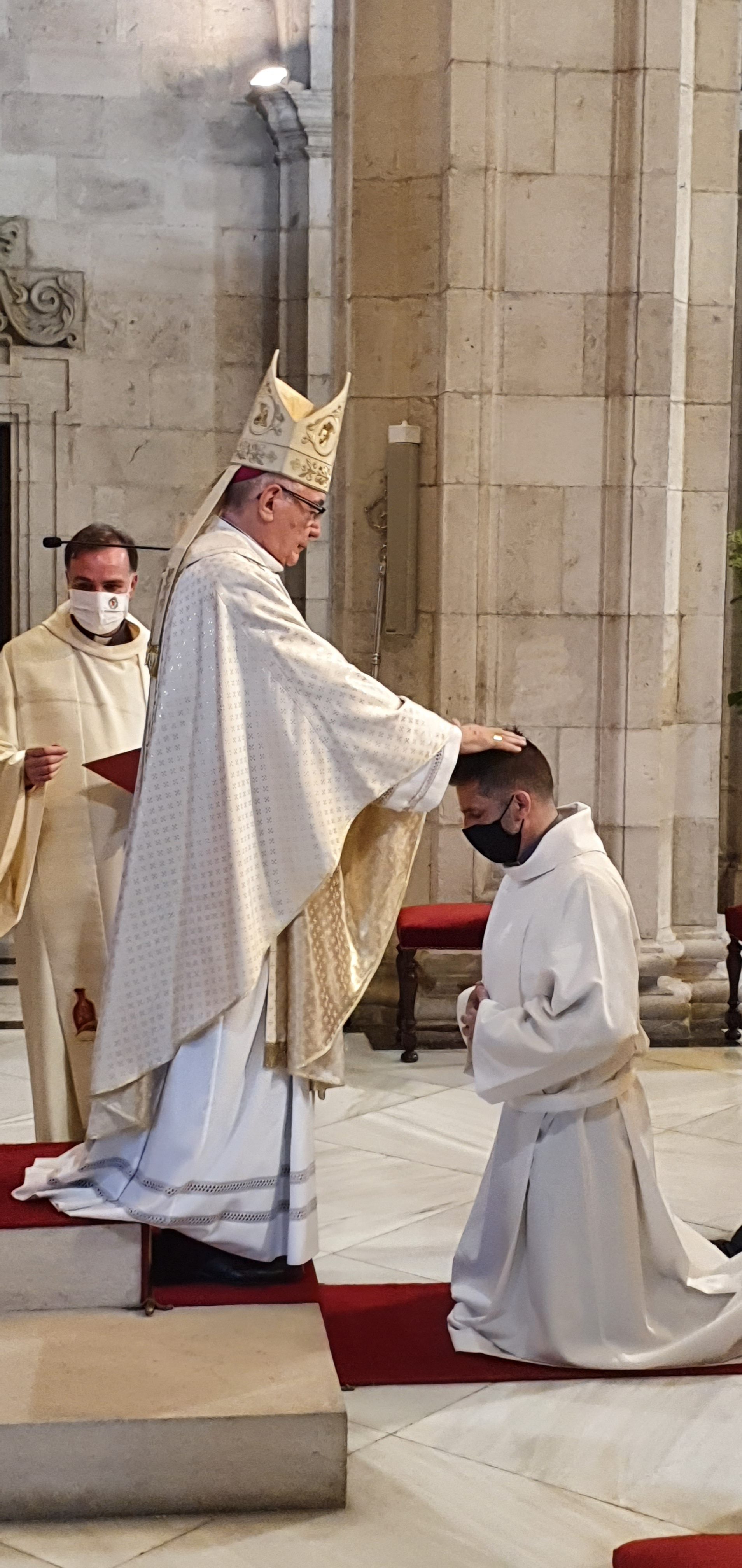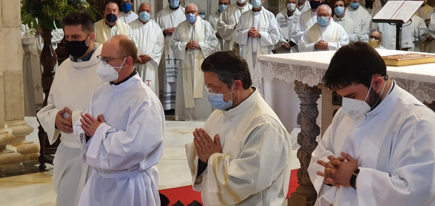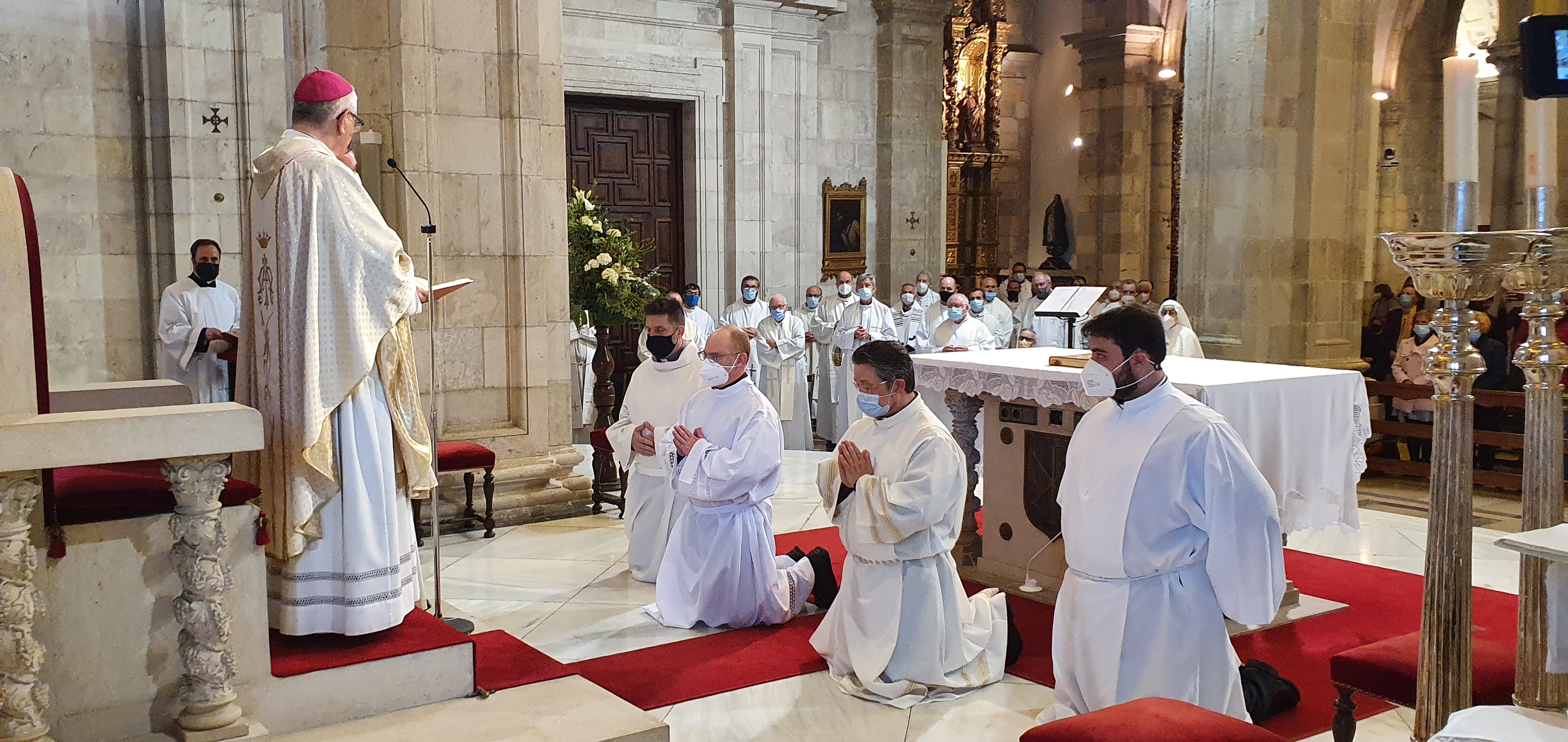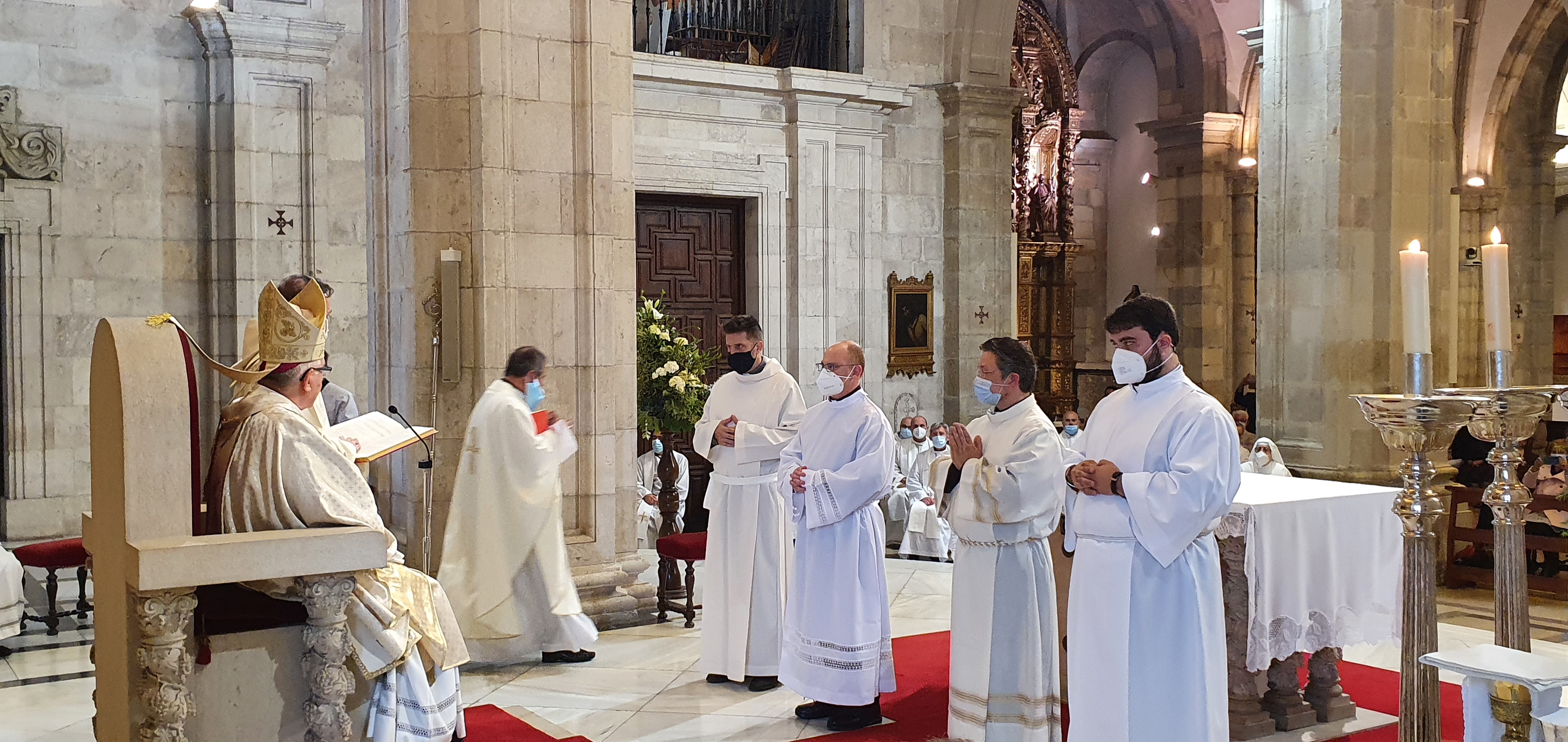 Jueves, 27 de mayo del 2021. Hoy a las 6 y media de la tarde, comenzaba con la procesión la ordenación diaconal de 4 nuevos diáconos. Los seminaristas de último curso Ramón Gómez Ruiz (24 años, Maliaño), Paulino Mier Suarez (45 años, Torrelavega) Raúl Clemente García (48 años, Arnuero) y otro de los ordenados ha sido Luis M. Eguiguren Garrido (50 años, Castro Urdiales) que de ellos es quien recibe el diaconado de modo permanente, no como sus compañeros que lo serán hasta que sean ordenados sacerdotes en los próximos meses.
