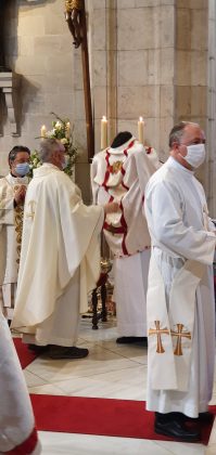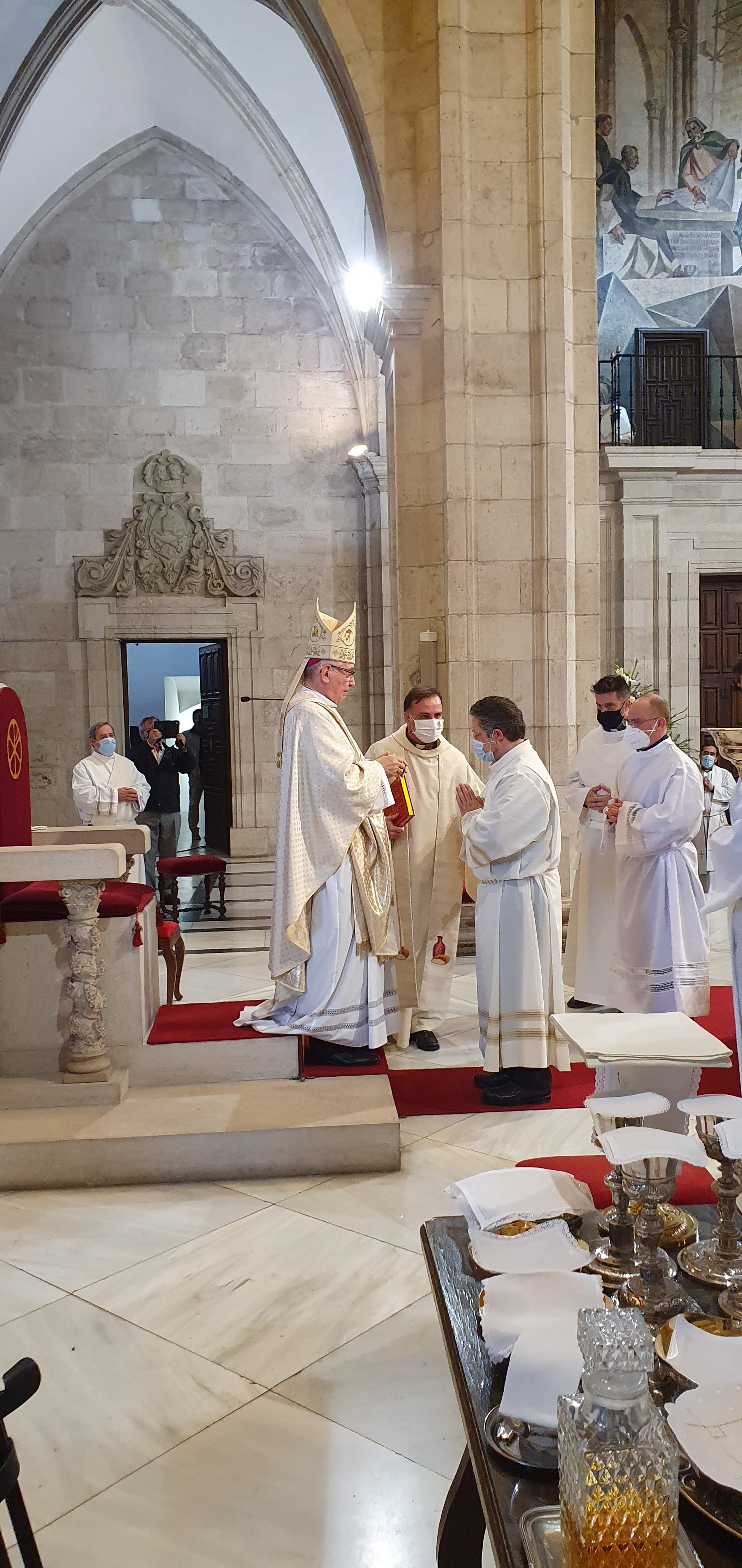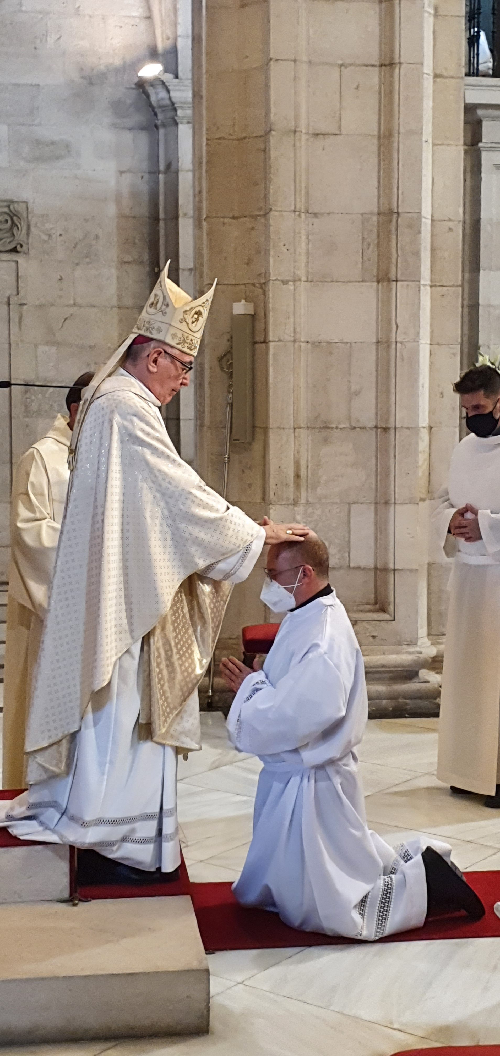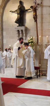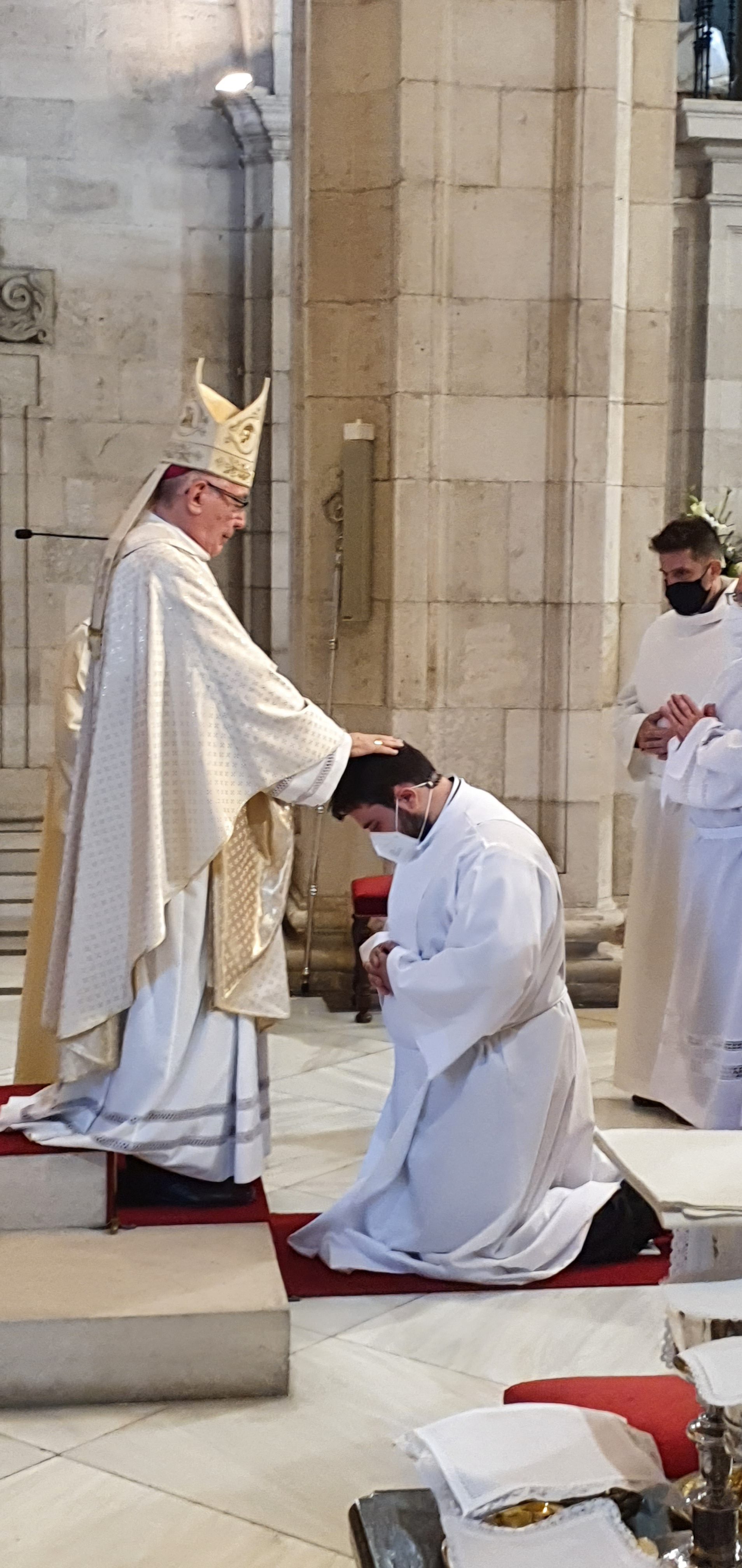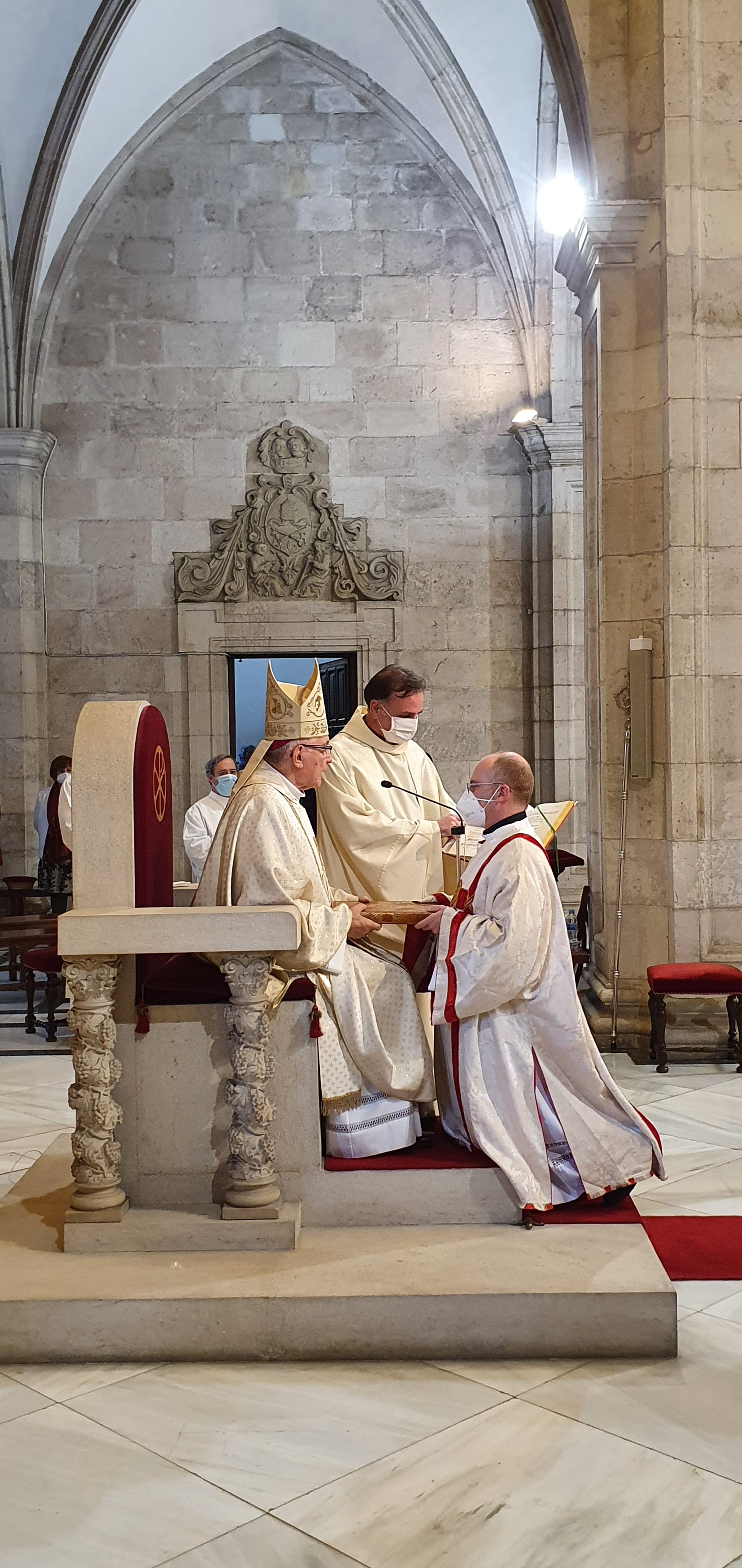 Jueves, 27 de mayo del 2021. Hoy a las 6 y media de la tarde, comenzaba con la procesión la ordenación diaconal de 4 nuevos diáconos. Los seminaristas de último curso Ramón Gómez Ruiz (24 años, Maliaño), Paulino Mier Suarez (45 años, Torrelavega) Raúl Clemente García (48 años, Arnuero) y otro de los ordenados ha sido Luis M. Eguiguren Garrido (50 años, Castro Urdiales) que de ellos es quien recibe el diaconado de modo permanente, no como sus compañeros que lo serán hasta que sean ordenados sacerdotes en los próximos meses.