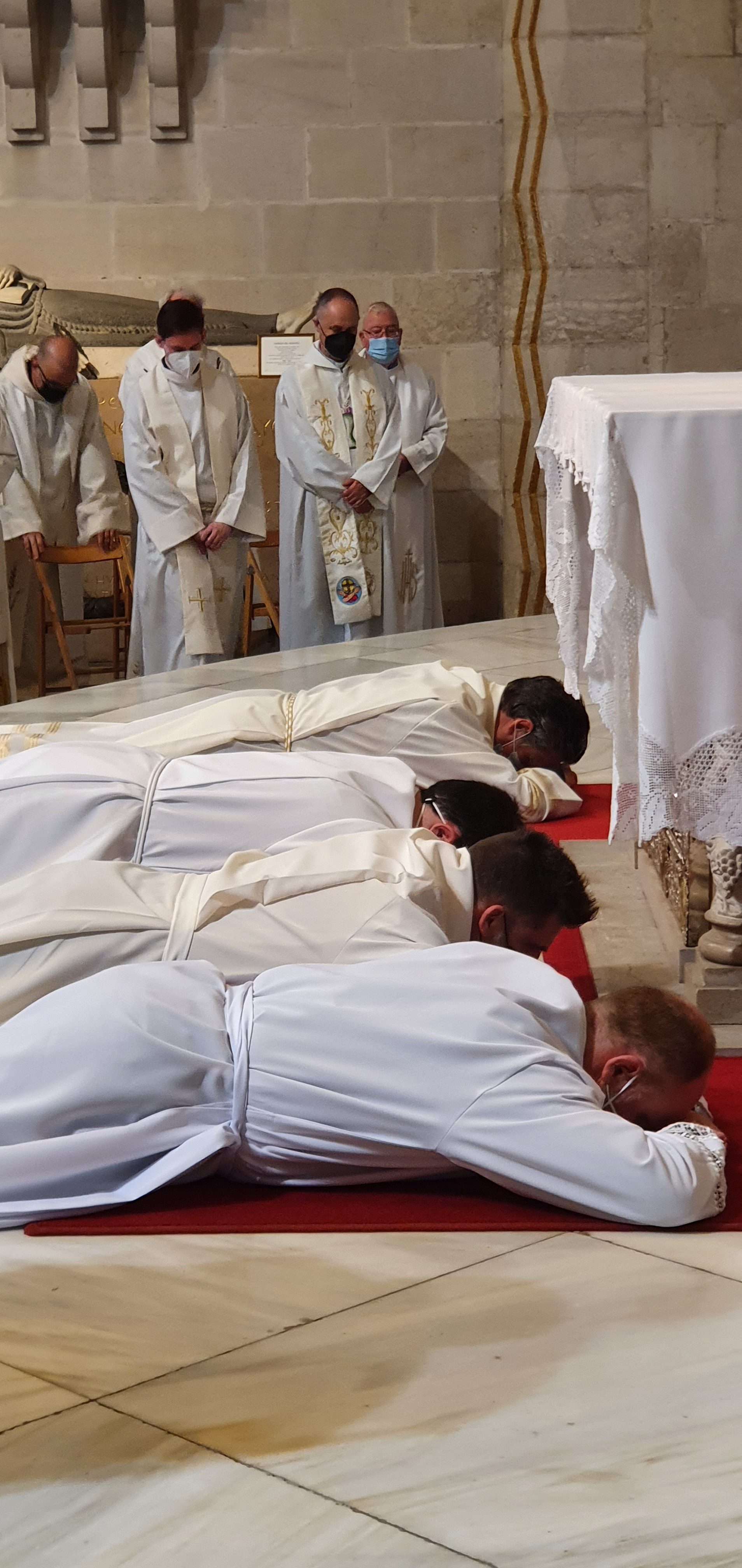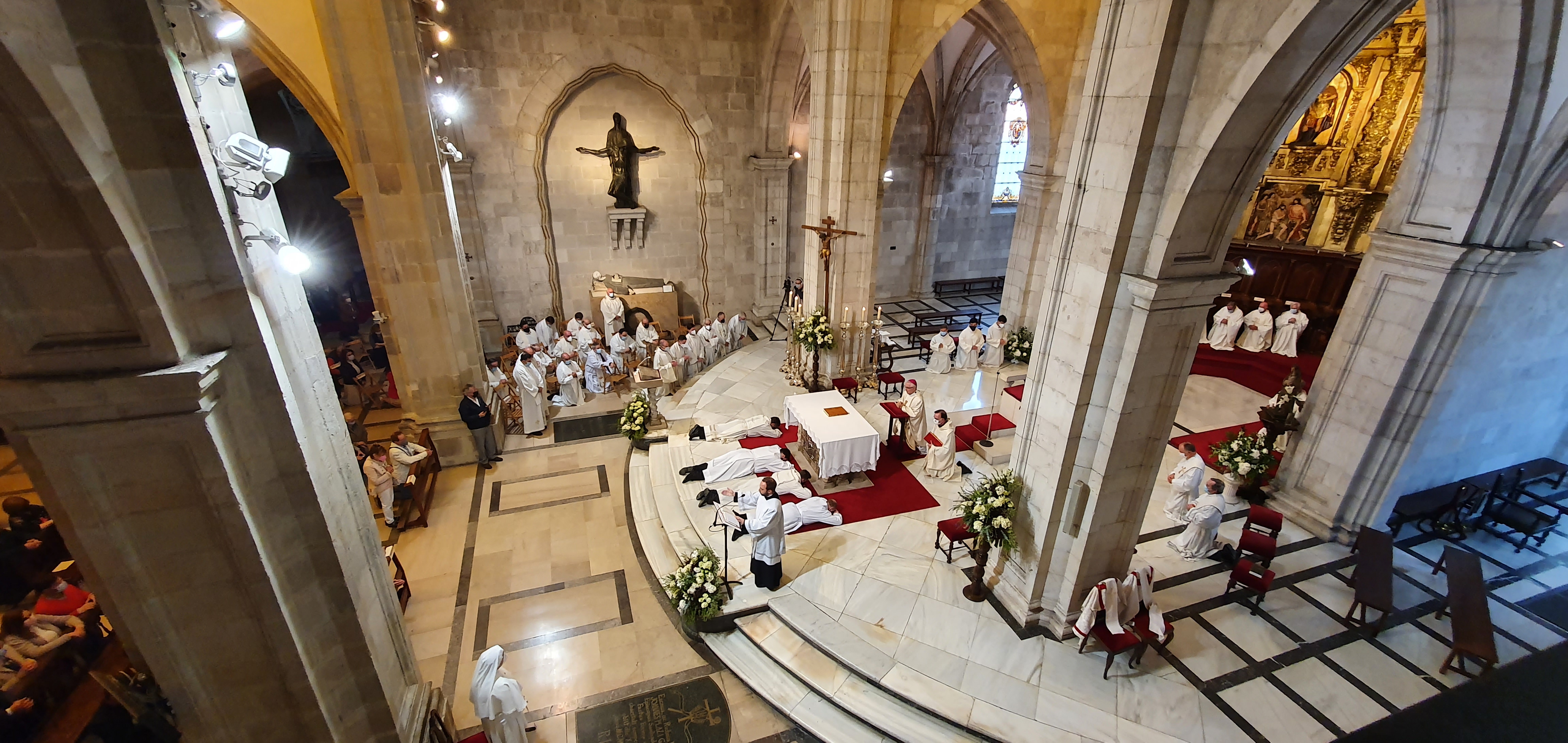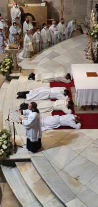 Uno de los momentos más impactantes es el que viven los ordenandos en la letanía de los santos. Permanecen postrados en el suelo, en signo de humildad y petición. Este momento, junto con la imposición de manos en silencio, es el más significativo de esta peculiar celebración.