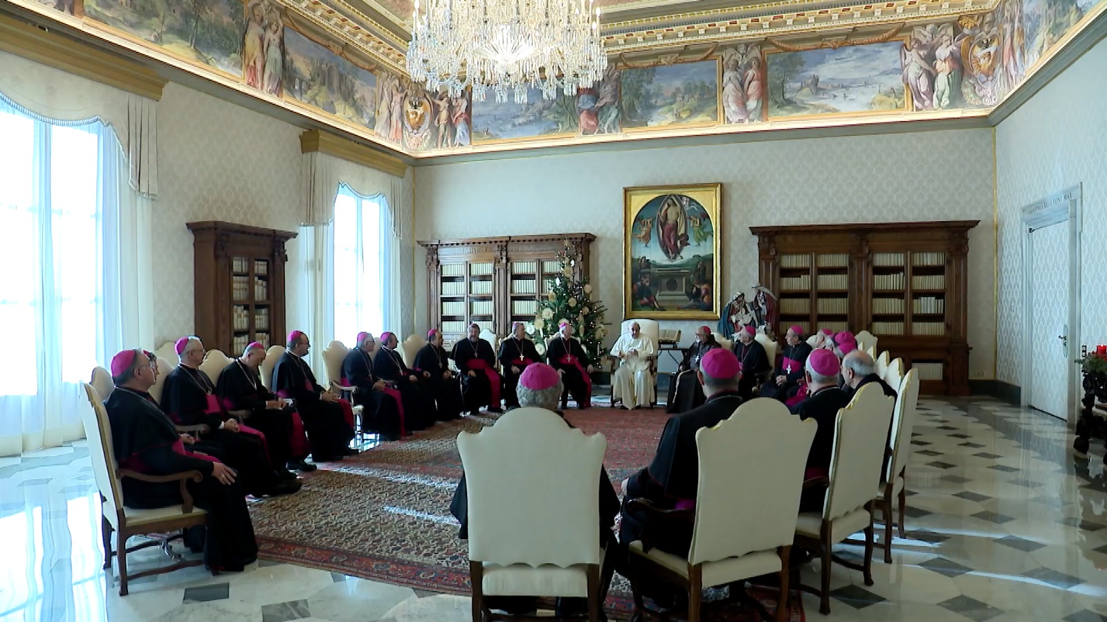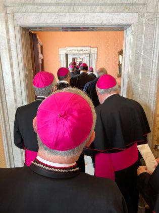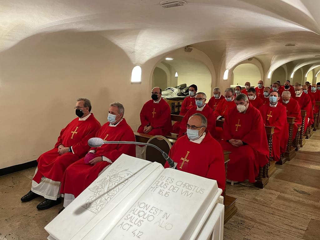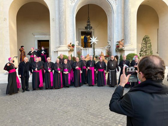 Durante la visita, además de visitar los distintos dicasterios romanos, en los que previamente se ha presentado un minucioso informe del estado de la Diocesis cada Obispo, también los sres. Obispos aprovechan para celebrar en las distintas Basílicas Romanas y tiene como momento cumbre el encuentro de los Obispos con el Santo Padre, en claro gesto de comunión, que se ha producido hoy, 16 de diciembre.