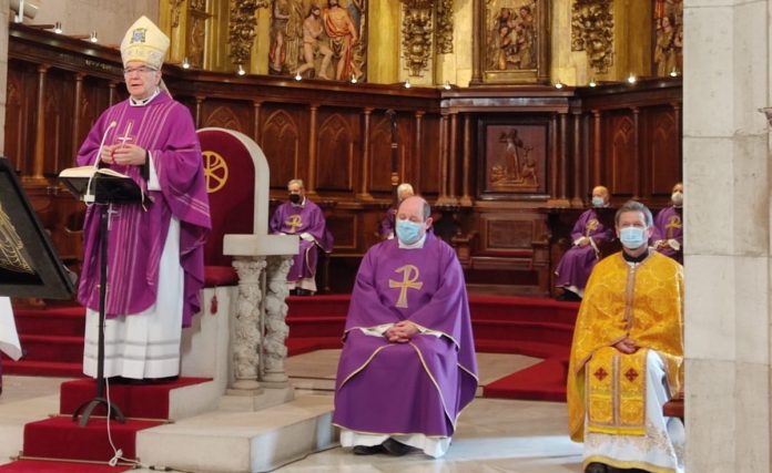 El pasado Domingo se celebró una Misa solemne que, al amparo de la celebración litúrgica del II Domingo de Cuaresma, congregó a quienes quisieron acompañar de modo cercano a los ucranianos que viven en nuestra Diócesis y cuya patria pasa ahora por malos momentos al verse invadida por Rusia y ver el conflicto armado a las puertas de sus casa, con una gran crisis de refugiados y emigración forzosa.