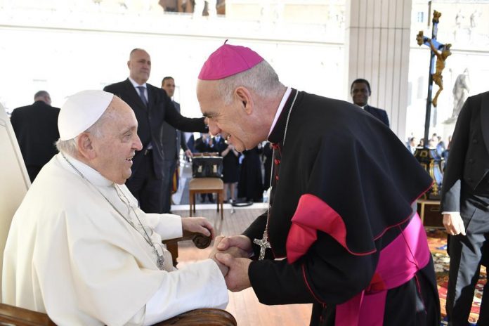 Esta mañana, tras la Audiencia General del Santo Padre, nuestro obispo electo ha podido saludar al Papa Francisco, acompañado del arzobispo de Valencia, Mons. Enrique Benavent.