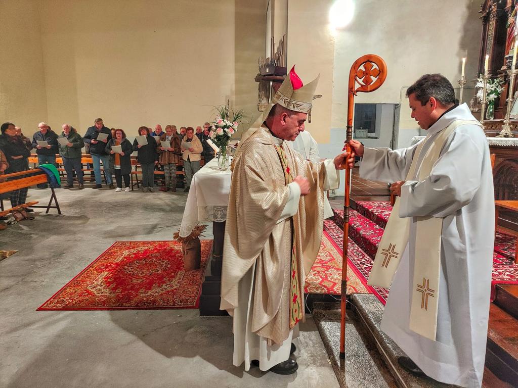 Por este motivo, D. Arturo quiso acercarse el pasado sábado 13 de enero al Valle de Mena. En un primer momento visitó a las Hnas. Compasionistas en Villasana de Mena a quienes agradeció su labor en las tareas parroquiales de la Unidad Pastoral y la felicitación navideña que la comunidad le envió. Tras el café con las hermanas en Villasana, D. Arturo se acercó hasta Entrambasaguas para la celebración de la Misa en la que estuvo acompañado por los sacerdotes del lugar D. Ramón Gómez Ruiz y D. Edwing Anaya Castellanos; y en la que lo esperaba un nutrido grupo de vecinos del pueblo acompañados por algunos miembros de la corporación municipal, el alcalde pedáneo, y vecinos de otras parroquias del Valle. El coro parroquial Sta. Cecilia de Villasana de Mena acompañó con su canto la celebración.