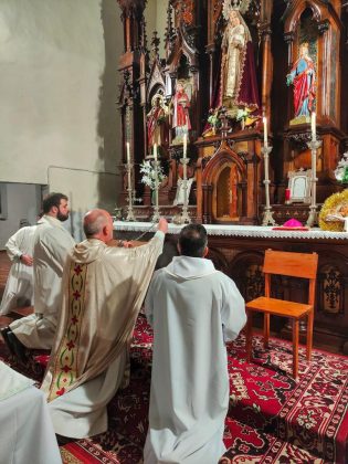 Unos instantes después, el ministro extraordinario que iba a animar la celebración de la Palabra en espera de presbítero se dio cuenta de que el sagrario estaba vandalizado y no estaba el copón con la reserva eucarística. Avisó inmediatamente a los sacerdotes que, a continuación, informaron al Sr. Obispo y los cuerpos y fuerzas de seguridad del estado.