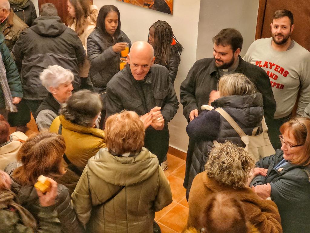 Acabada la Misa y el acto de desgravio todos los asistentes pudieron participar en un vino español en el local parroquial donde los vecinos de Mena pudieron conocer más de cerca a su nuevo Obispo y en el que el Obispo pudo conocer parte de la realidad desde bello y gran rincón de la diócesis.