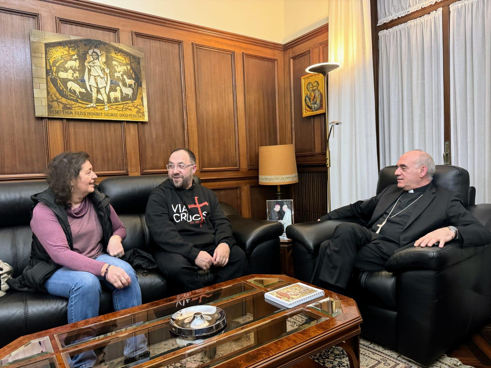 Esta tarde Toño Casado visitaba la Catedral para fijar ubicaciones y ver necesidades del espacio; además le presentaba y concretaba más detalles a nuestro Obispo, D. Arturo y a otros miembros del equipo.