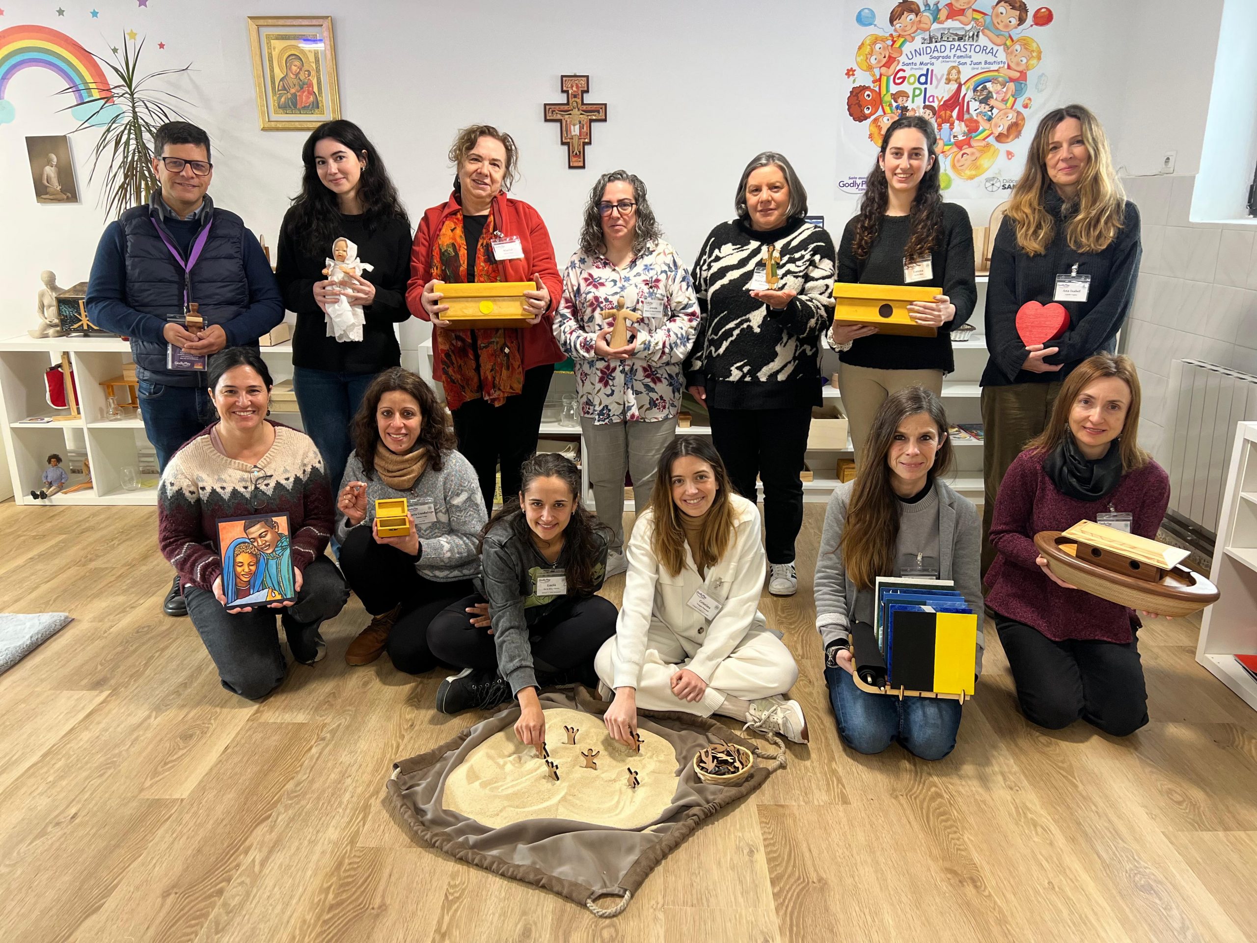 El pasado 1 de febrero finalizó el Curso acreditado de formación básica en Godly Play para ‘narradores’ y ‘porteros’ organizado por la asociación de Godly Play España con la colaboración de la Unidad parroquial de la Sagrada Familia, Santa Maria y San Juan Bautista en la sala de Godly Play Santa Maria (Pronillo). Durante tres sábados, se ha compartido una formación intensiva y experiencial en la teoría y práctica de esta metodología.