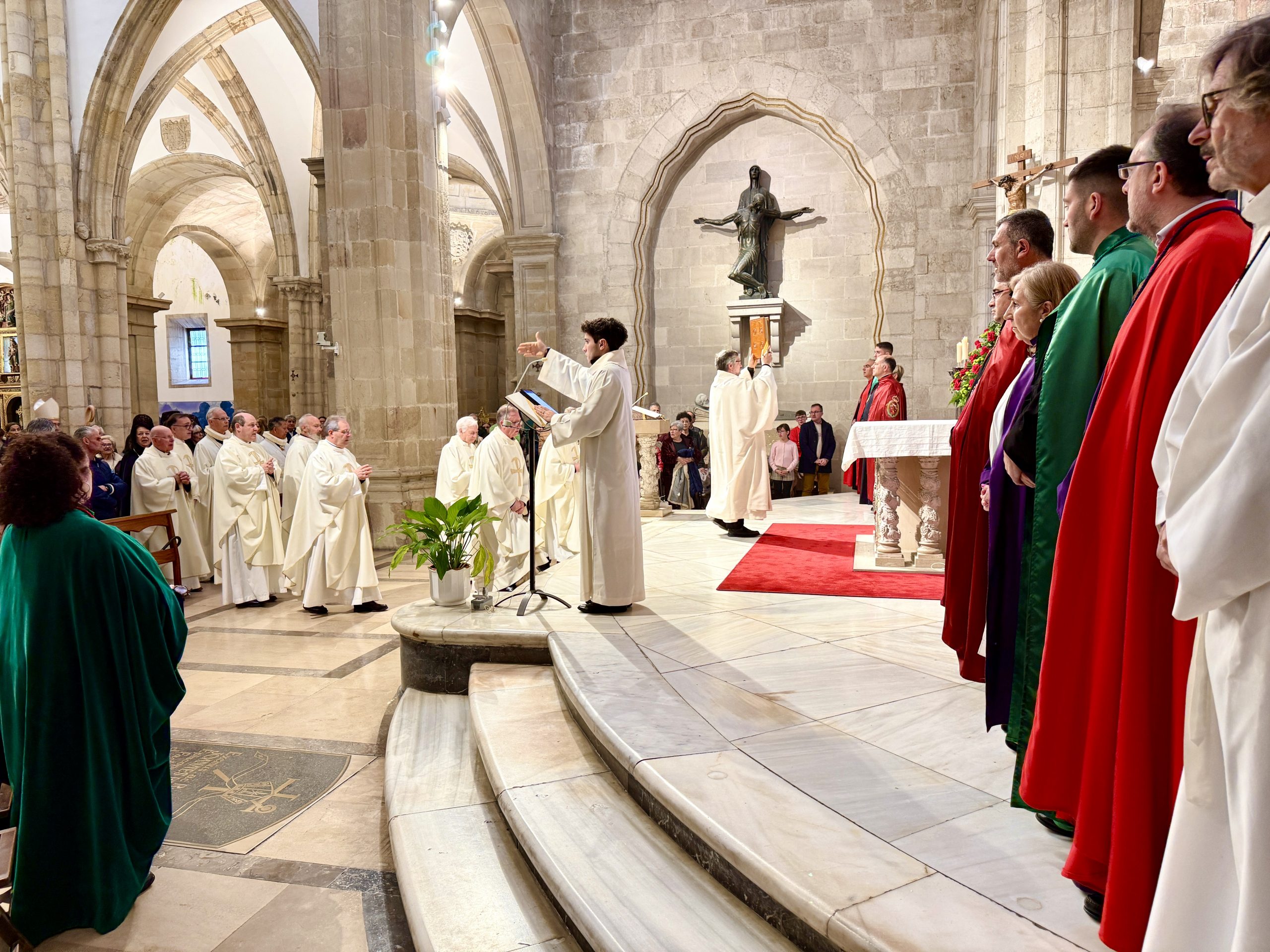 La celebración en la catedral de Santander fue presidida por nuestro Obispo, D. Arturo, quien en su homilía, analizó también el Evangelio de este Jueves Santo: «Nuestra reacción hubiese sido la misma que la de Pedro, pero tal vez por respeto o por quedarnos distantes», aclaró. «¿Cuál es tu respuesta?», preguntó. «Si no estamos con Jesús, nada tenemos, ni alegría ni esperanza». Sugirió llevarse la pregunta con la que termina Jesús el Evangelio «¿Comprendéis lo que he hecho con vosotros?». ¿Realmente comprendemos este amor extremo? Tal y como aseguró D. Arturo, «comprender ese amor es imposible. Lo intentamos, pero nos cuesta». Ciertamente es complicado asumir el valor de alguien que da la vida por amor, lo más valioso que tenemos, lo que sustenta todo: la vida.
