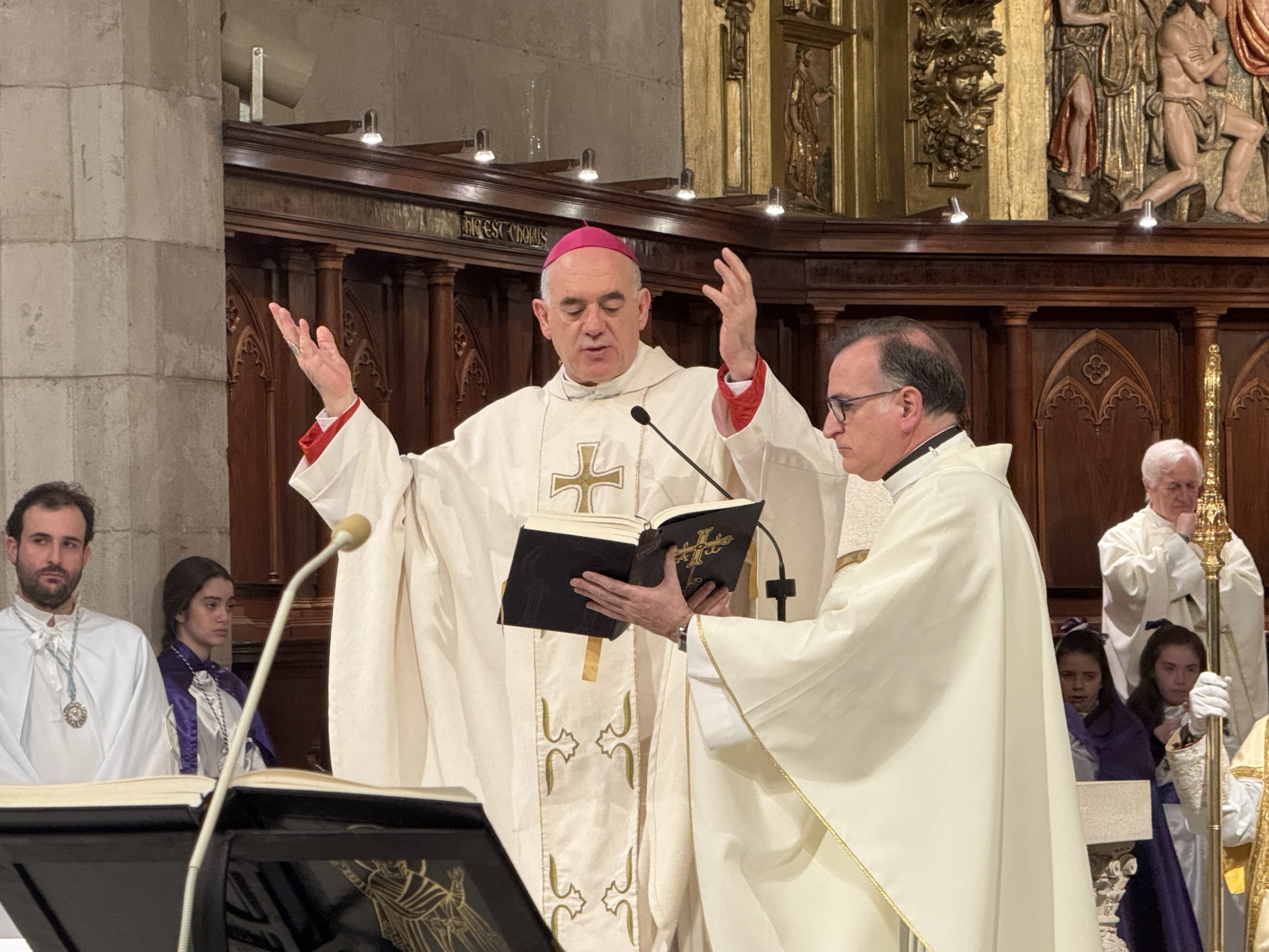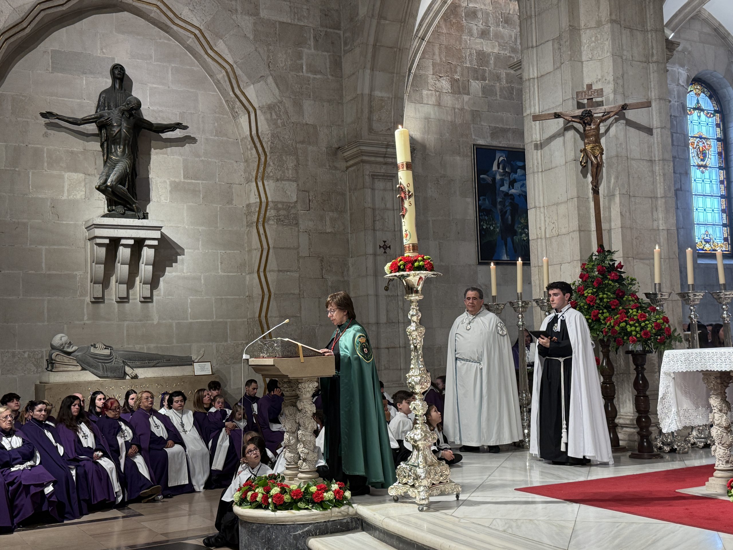 Una Catedral repleta de fieles y con una amplia representación de las cofradías y hermandades y de autoridades civiles y militares en la celebración más importante del calendario litúrgico cristiano. Esta marca el culmen de la Semana Santa y conmemora la resurrección de Jesucristo al tercer día después de su crucifixión. Esta festividad es el fundamento central de nuestra fe, ya que proclama la victoria de Cristo sobre la muerte y el pecado, ofreciendo, así, esperanza de vida eterna a todos los creyentes.