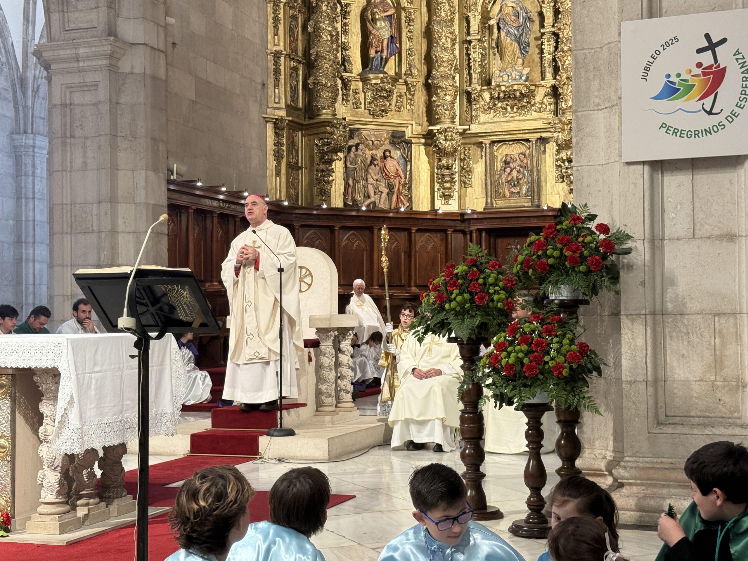 La homilía de nuestro Obispo, D. Arturo, se centró en destacar que hoy comienza todo: «todo empieza hoy, nada ha terminado». «Cristo vive, sin Él nuestra vida no tiene sentido», aseguró. Añadió que «nuestro compromiso, nuestro gozo, nuestra fiesta es sembrarlo todo de vida pese a las noticias de dolor y muerte que nos rodean». Frente a esta situación, animó a que, personalmente, gritemos que Cristo vive y solicitó a los presentes que «como suelo pediros, hacedlo con alegría».